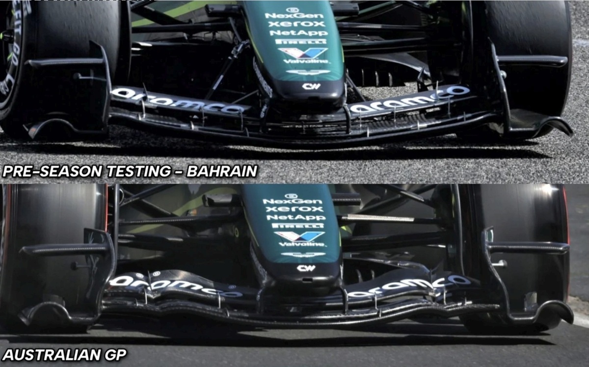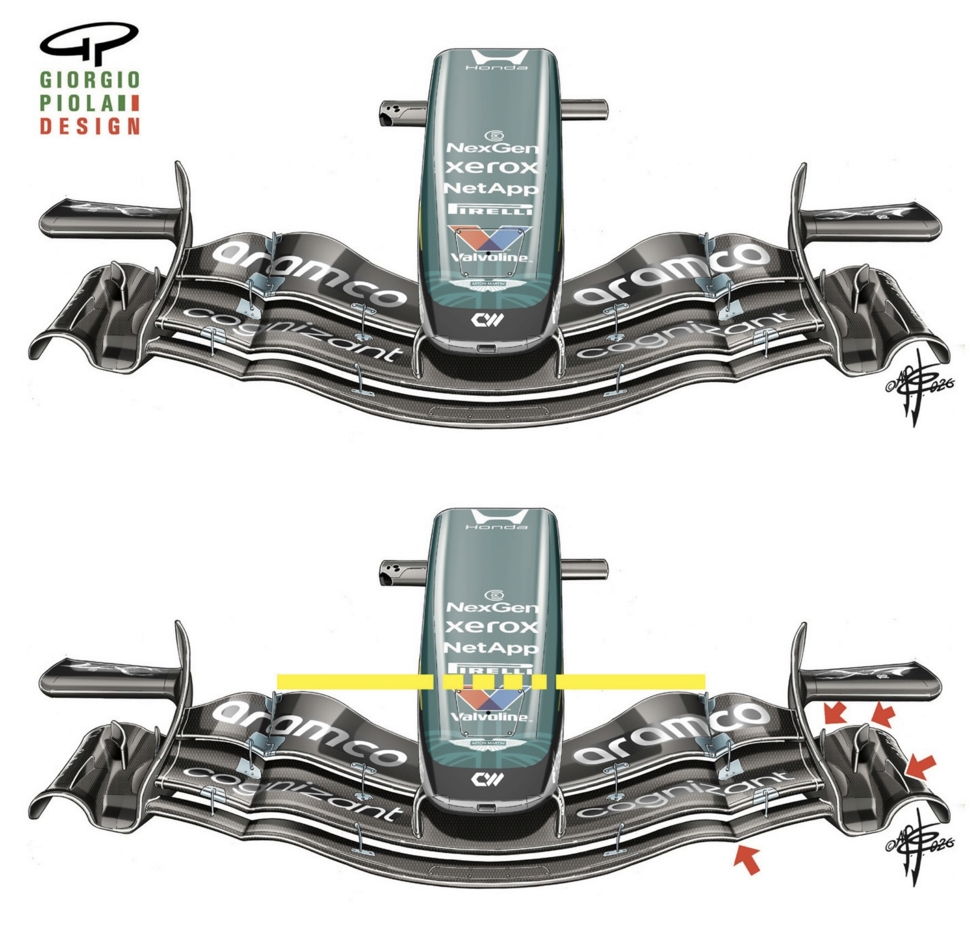 Aston Martin F1 Team introduced significant changes to its front wing. These include a redesigned mainplane, as well as the second and third flaps, along with improvements to the endplate and footplate elements.