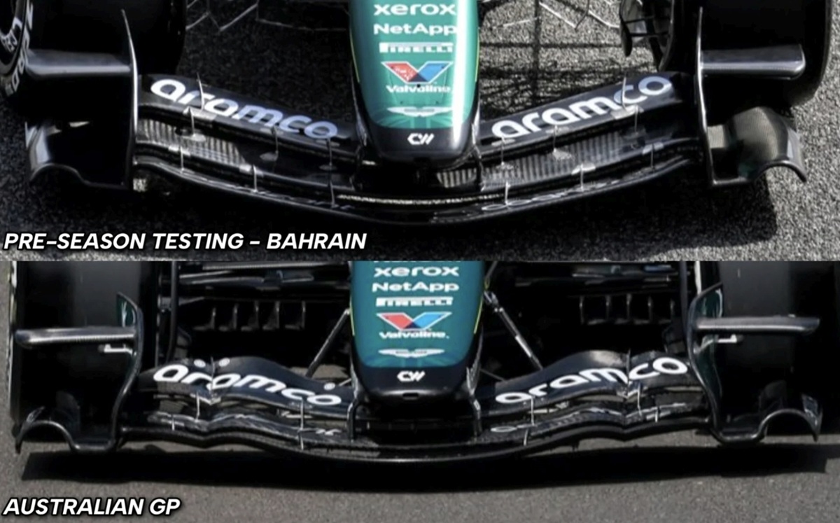 Despite the challenges faced with the AMR26, Adrian Newey has unveiled the most interesting upgrade seen in Melbourne: a new, highly complex front wing designed to optimize the two intended configuration modes—straight-line mode and cornering mode.