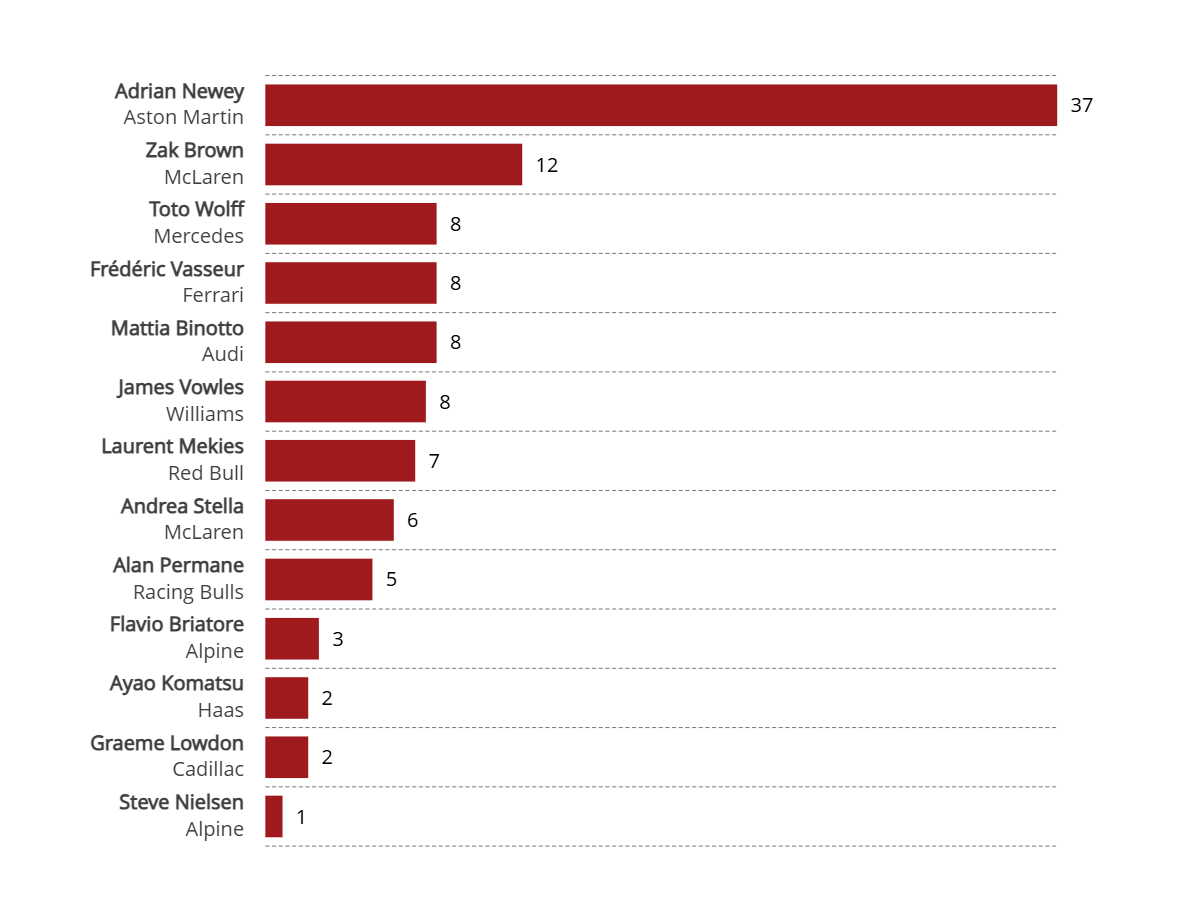 According to the report, the highest-paid team boss this year is Adrian Newey of the Aston Martin F1 Team.